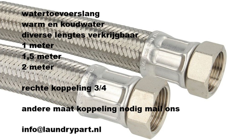 RVS Flexibele watertoevoerslang 2 x 3/4" binnendraad recht - 200cm